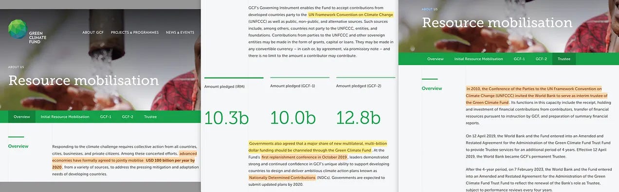 Και στον ιστότοπο του Πράσινου Ταμείου για το Κλίμα διαπιστώνουμε ότι... προφανώς, οι κυβερνήσεις μας έχουν συμφωνήσει να καταβάλουν 100 δισεκατομμύρια δολάρια ετησίως έως το 2020 [10]! Περίεργο. Δεν θυμάμαι καμία ανακοίνωση σχετικά με αυτό, ούτε καν ψηφοφορία για το θέμα! Διαπιστώνουμε επίσης ότι αυτό διαχειρίζεται η Παγκόσμια Τράπεζα, η οποία ενεργεί ως διαχειριστής (ως συνήθως), και ότι αυτό σχετίζεται με την UNFCCC, κάτι που είναι τόσο εκπληκτικό όσο η επανεκλογή (επαναδιορισμός) της Ursula von der Leyen - χωρίς αντίπαλο - για τον υποτιθέμενο ρόλο της «Προέδρου της ΕΕ».