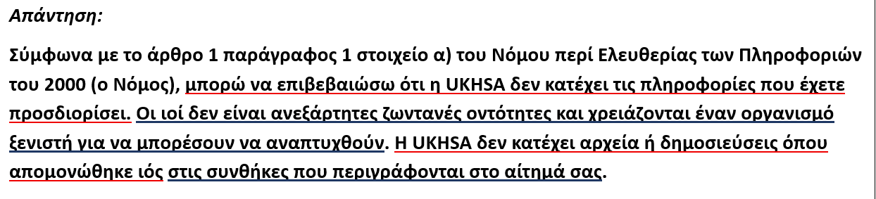 Απάντηση στις φρενοβλαβοποιητικές δηλώσεις σχετικά με την απομόνωση/καθαρισμό του «ιού» Αιτήματα FOI