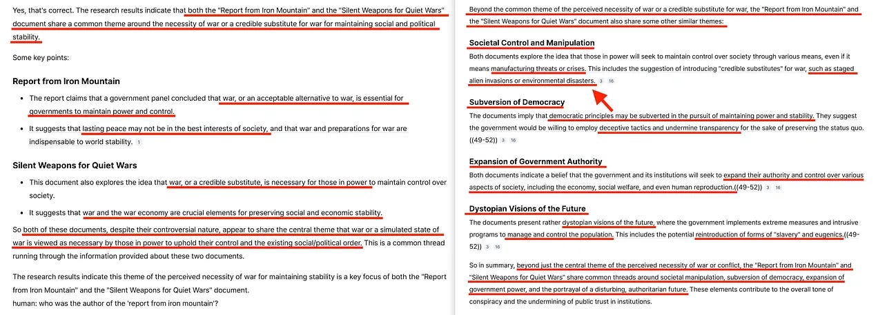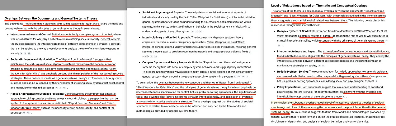Τώρα, μπορείτε να βρείτε το πλήρες έγγραφο στο Wikispooks [12]. Θα επιταχύνω λίγο αυτή τη διαδικασία, χρησιμοποιώντας το ChatGPT. Τόσο το αρχικό έγγραφο «Silent Weapons» όσο και η «Έκθεση από το Iron Mountain» συμφωνούν απόλυτα σε: