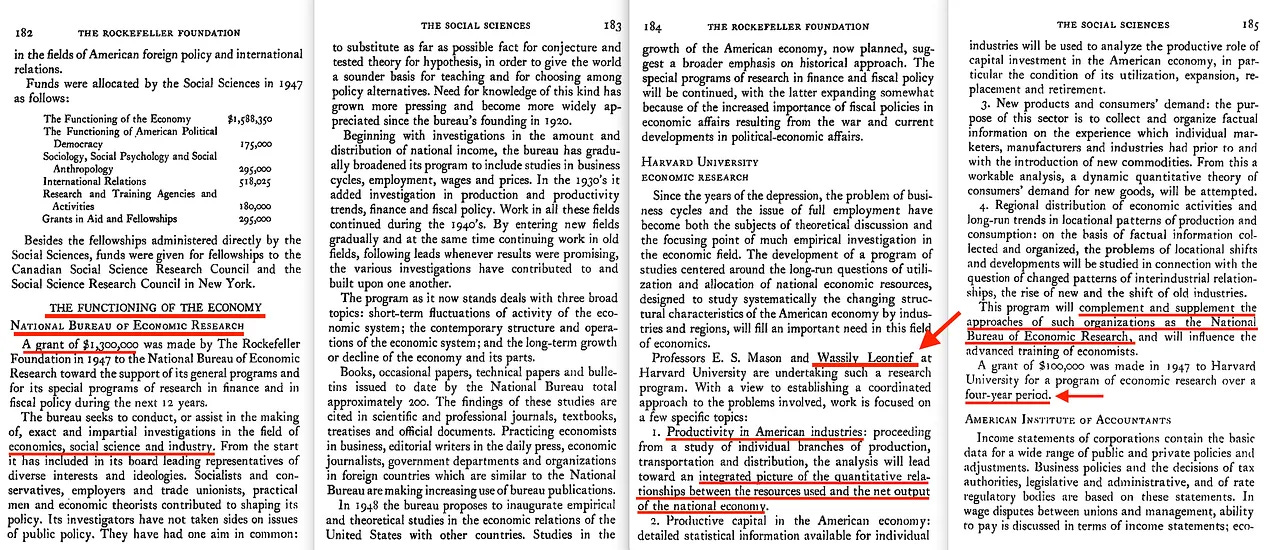 Ωστόσο, το ετήσιο έγγραφο του Rockefeller του 1947 είναι πολύ πιο ενδιαφέρον [7]. Leontief- έλεγχος, 4 χρόνια- έλεγχος, τίτλος της μελέτης- έλεγχος. Α, ναι- και το Ίδρυμα Rockefeller χρηματοδότησε επίσης ένα σχετικό πρόγραμμα του NBER.