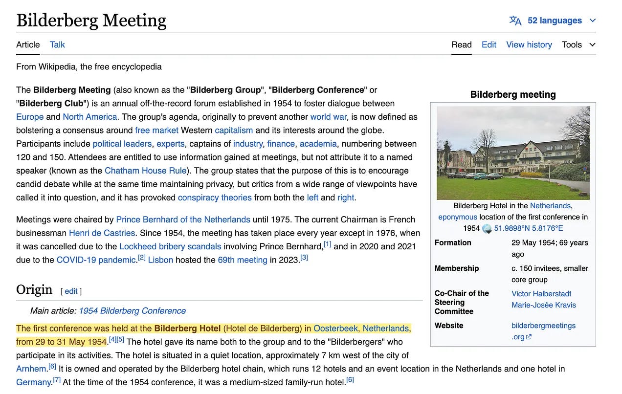 Είτε έτσι είτε αλλιώς, με την συνειδητοποίηση ότι η απεριόριστη κοινωνική δύναμη θα γινόταν δυνατή μέσω της πυρηνικής ενέργειας, και αυτό να απέχει μόνο μερικές δεκαετίες, ήταν μια ακαταμάχητη πρόταση. Έτσι, κατά τη διάρκεια μιας συνάντησης το 1954, κηρύχθηκε «σιωπηλός πόλεμος» εναντίον του λαού. Και η χρονιά αυτή συμπίπτει με την πρώτη συνάντηση του Bilderberg [9]. Αλλά, ξέρετε, αυτό είναι προφανώς μια θεωρία συνωμοσίας, και σίγουρα δεν πρέπει να συνεχίσετε να διαβάζετε, αλλιώς θα συνεχίσουν να σας αποκαλούν με άσχημα ονόματα. ΩΧ, ΟΧΙ!