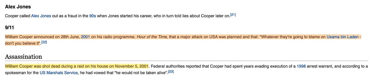 Τώρα, δεν θα αναλύσω το εν λόγω βιβλίο. Στην πραγματικότητα, με ενδιαφέρει μόνο αυτό το ένα έγγραφο, εξ ου και ο τίτλος αυτού του άρθρου. Παρεμπιπτόντως, αυτός είναι και ο λόγος για τον οποίο δεν θα ασχοληθώ με το υποτιθέμενο καβγά μεταξύ του Alex Jones και του William Cooper που έλαβε χώρα τη δεκαετία του 1990 [5].