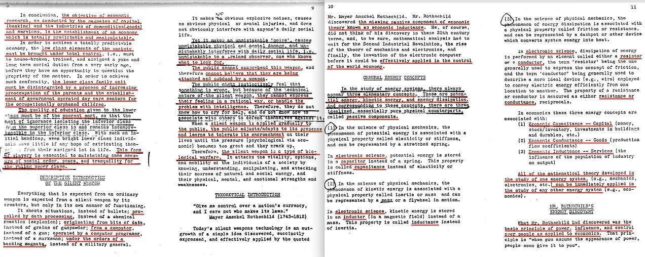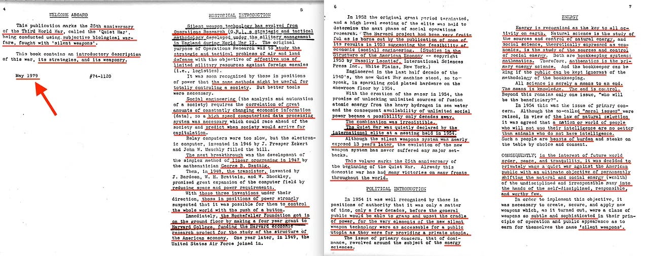 Οι πρώτες σελίδες δηλώνουν εν συντομία την πρόθεση να υποδουλώσουν τις μάζες μέσω της κοινωνικής μηχανικής και της αυτοματοποίησης της κοινωνίας - και αυτό, σε παγκόσμια κλίμακα. Ναι, αυτή είναι μια επίσημη κήρυξη πολέμου εναντίον του λαών.