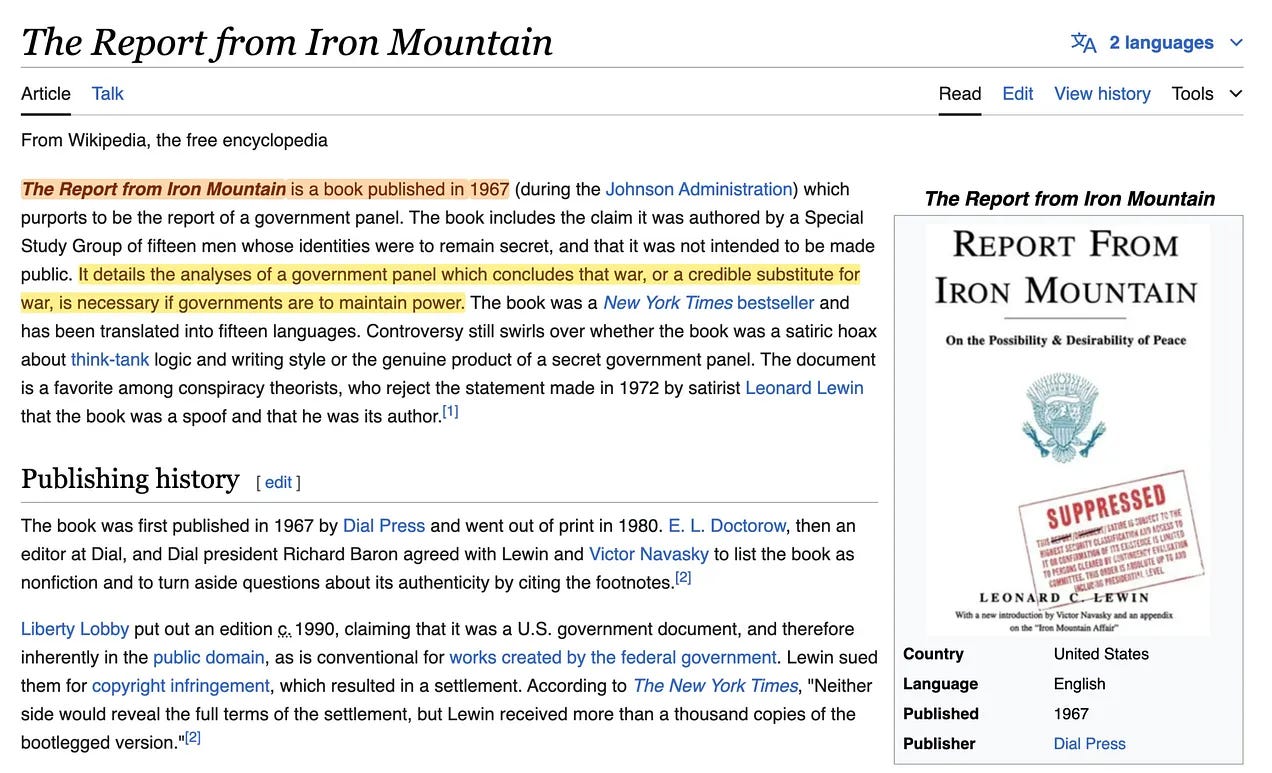 Εδώ είναι. «Η Έκθεση από το Iron Mountain» [11].