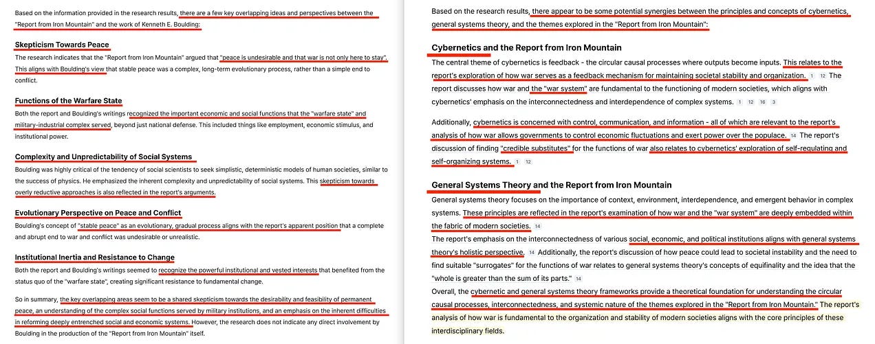 κάτι που υποδηλώνει ότι η πιθανότητα ο Kenneth Boulding να ήταν ένα από τα 15 μέλη της επιτροπής είναι πολύ πραγματική. Αλλά βλέπουμε επίσης ορισμένες αλληλεπικαλύψεις μεταξύ της Έκθεσης από το Iron Mountain και εννοιών που σχετίζονται με τη Γενική Θεωρία Συστημάτων -