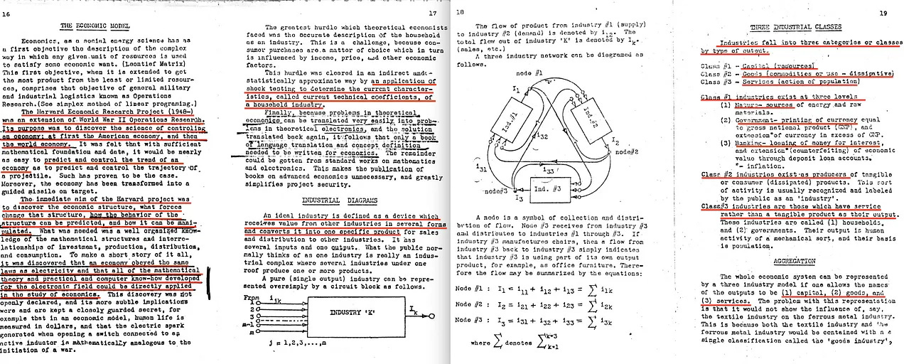«Το Harvard Economic Research Project (1948-) ήταν μια επέκταση της Έρευνας Επιχειρήσεων του Β’ Παγκοσμίου Πολέμου. Σκοπός του ήταν να ανακαλύψει την επιστήμη του ελέγχου μιας οικονομίας: αρχικά της αμερικανικής οικονομίας και στη συνέχεια της παγκόσμιας οικονομίας»....
