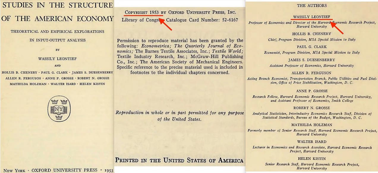 Υποτίθεται ότι η τετραετής μελέτη ήταν επιτυχής, με την έκδοση του «Studies in the Structure of the American Economy» (Μελέτες για τη δομή της αμερικανικής οικονομίας) το 1953 [8]. Ναι, όλα ταιριάζουν.