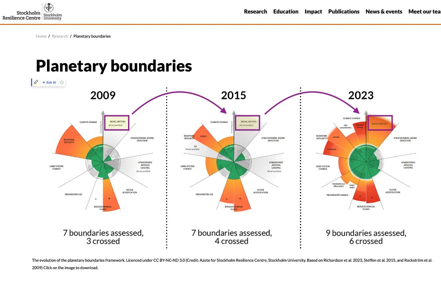 Αυτό, βέβαια, πρόκειται να γίνει μέσω της αντανακλαστικής μάθησης, επειδή φυσικά δεν έχουν ακόμη εφεύρει το πλαίσιο των πλανητικών ορίων, το οποίο δεν είναι εντελώς απατηλό - ειδικά στο πλαίσιο του ότι το 2009 δεν γνώριζαν καν τι συνεπάγεται η έννοια των «νέων οντοτήτων», το 2015 δεν ήταν ακόμη σίγουροι, αλλά ο αριθμός που δόθηκε προέβλεπε με κάποιο εκπληκτικό τρόπο την τιμή που εμφανιζόταν μέχρι το 2023 [4], μέσω μιας επιστήμης που ουσιαστικά σχετίζεται με την πρόβλεψη του χαοτικού απείρου.