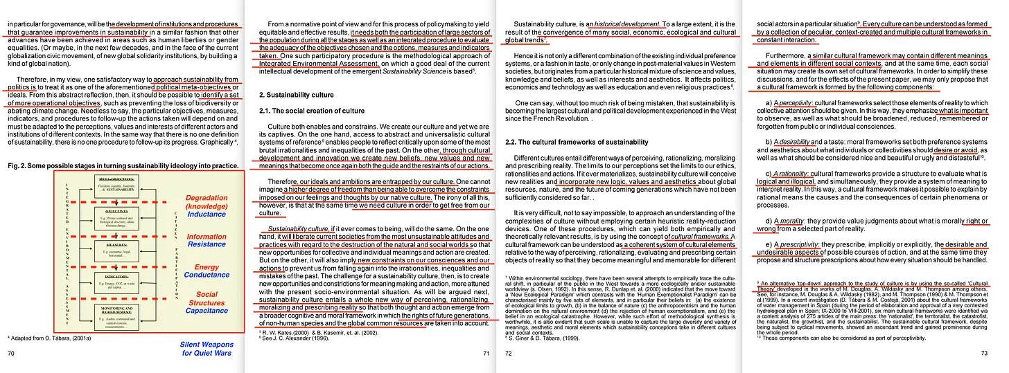 Αλλά αν επιστρέψετε περαιτέρω στο σχήμα του, θα δείτε ότι το ανώτερο επίπεδο περιγράφεται ως «μετα-αντικειμενικό», που σημαίνει ότι είναι ένα βολικό μοντέλο για το μελλοντικό πλαίσιο «μετα-κρίσης» [8] που προσπαθούν επί του παρόντος να εγκαθιδρύσουν με το πρόσχημα των πλανητικών ορίων. Κατά συνέπεια, αυτό που επιδιώκει στην πραγματικότητα η Tabara είναι να δημιουργήσει τη συστημική σκέψη για να επιτρέψει τον αυστηρό αυταρχισμό από πάνω προς τα κάτω, αν και αυτό θα πλαισιωθεί παραπλανητικά μέσω της συνεχούς πολιτισμικής πλύσης εγκεφάλου... που παρεμπιπτόντως ενεργοποιείται μέσω της θεωρίας των πολιτισμικών συστημάτων [9].