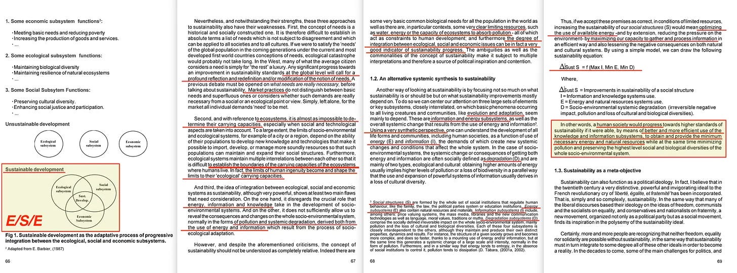 Όπως και να ‘χει, αυτό που ισχυρίστηκε ο Tabara ότι γνωρίζουμε είναι ότι η αρχή της μεγιστοποίησης της χρήσης της πληροφορίας και της γνώσης για την ελαχιστοποίηση της χρήσης της ενέργειας και των πόρων, γεγονός που μας οδηγεί ακριβώς πίσω στη δική του εξίσωση, η οποία εκτελεί ουσιαστικά την εκφρασμένη αλλαγή παραδείγματος που περιγράφεται μέσω των Leverage Points της Donella Meadows, αν και είναι μάλλον πιο γνωστή για τη συμβολή της μέσω της μάλλον διαβόητης μαλθουσιανής έκθεσης της Λέσχης της Ρώμης του 1972 - Limits to Growth (Τα Όρια της Ανάπτυξης) [7].