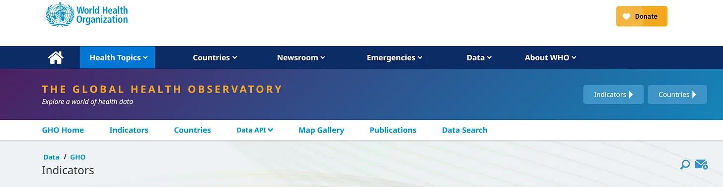 Παγκόσμια: HDI (προσδόκιμο ζωής), Παγκόσμιοι δείκτες υγείας του ΠΟΥ25