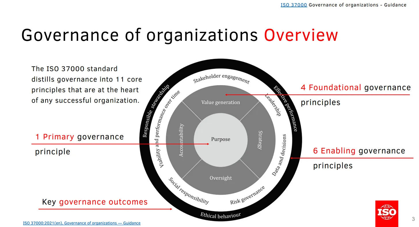 Το ISO 37000 [8] θέτει παγκόσμια κριτήρια αναφοράς για την οργανωτική διακυβέρνηση των ενδιαφερόμενων μερών, παρέχοντας ένα πλαίσιο για την ηθική εποπτεία και τη διαχείριση κινδύνων.
