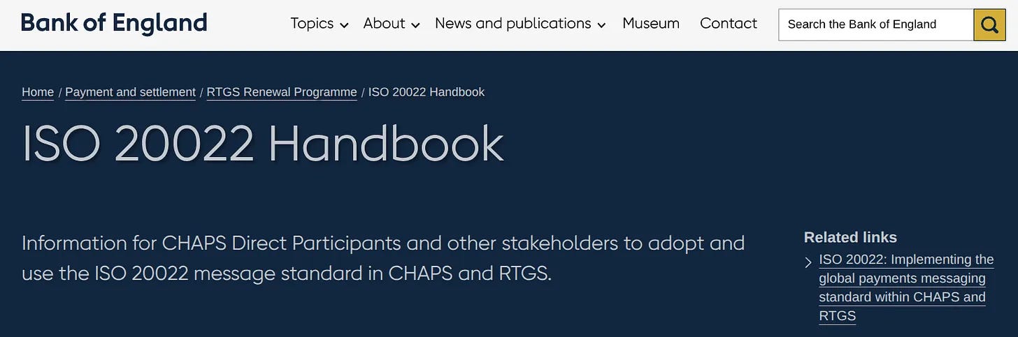 Το ISO 20022 [16,17,18], ένα ανοικτό πρότυπο για χρηματοοικονομικά μηνύματα, επιτρέπει πλουσιότερες και πιο δομημένες ροές δεδομένων σε ψηφιακές χρηματοοικονομικές ράγες, υποστηρίζοντας την αυτοματοποίηση, τη συμμόρφωση με τις κανονιστικές διατάξεις και την ανάλυση μεγάλης κλίμακας.