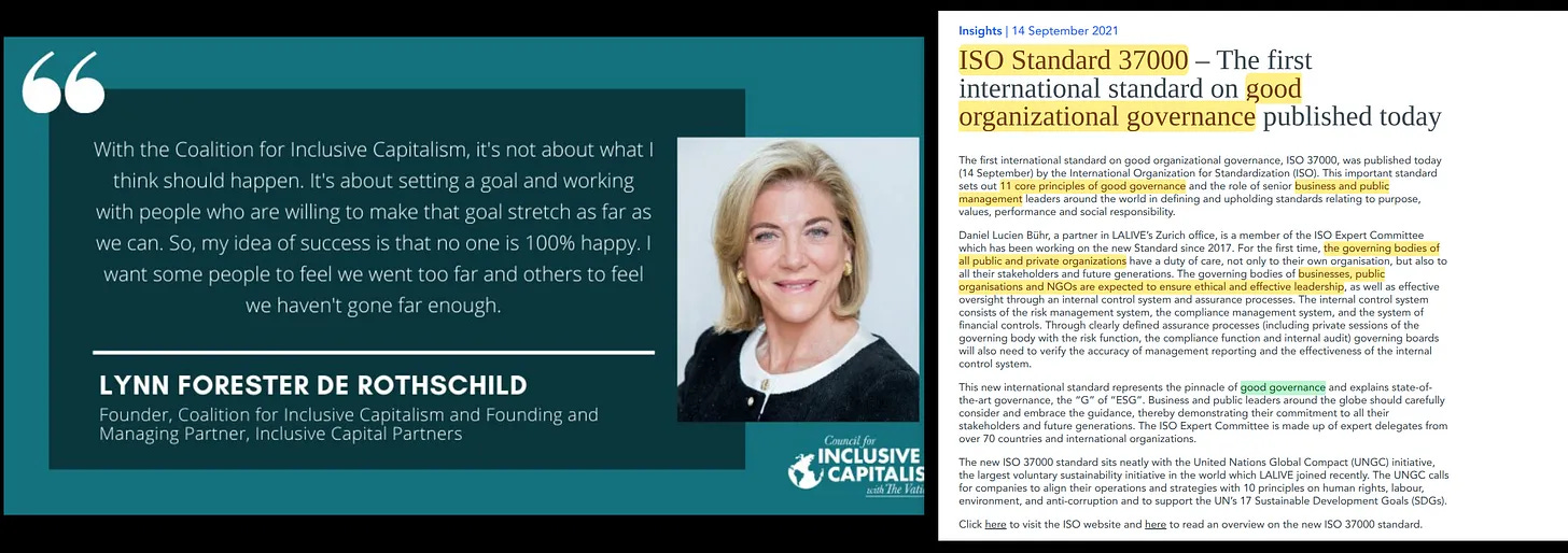 Η πραγµατική µάχη θα δοθεί για το ποιος το κυβερνά - ηθικά [65]. Και εδώ είναι που επιστρέφουμε στην εστίαση του ISO 37000 [66] στη σκιαγράφηση της γνωστής σοσιαλιστικής δομής της Φαβιανής συντεχνίας στο πλαίσιο της «Καλής Διακυβέρνησης» [67] και της «Ηθικής Ηγεσίας» - με άλλα ISO να ζητούν ομοίως το ίδιο [68].