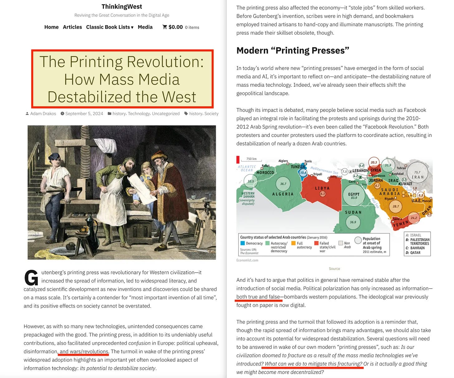 Και η ίδια ακριβώς οργάνωση, που προώθησε αυτό το Pied Piper tweet πριν από λίγους μήνες, πήρε μια ανησυχητική θέση στο θέμα της ελευθερίας του λόγου, παραβλέποντας εντελώς το γεγονός ότι η ελίτ είχε το μονοπώλιο της παραπληροφόρησης και των κατάφωρων ψεμάτων πριν από την έλευση του Γουτεμβέργιου. Είναι αυτή η επίμονη, κατάφωρα διανοητικά ανέντιμη διατύπωση που... μόλις την εντοπίσεις, γίνεται οδυνηρά προφανής.