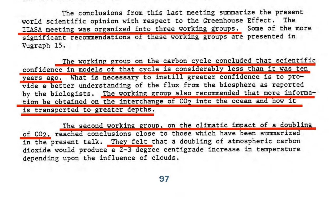 ... ναι. Και αυτό, μόλις λίγους μήνες πριν η καλύτερη διαθέσιμη επιστημονική συναίνεση καθιερώσει ότι το διοξείδιο του άνθρακα είναι τρομακτικό, σε ένα συνέδριο με προσκεκλημένους που διοργάνωσε το χρηματοδοτούμενο από τον Rockefeller, ICSU, όπου η συζήτηση δεν αφορούσε την ίδια την επιστήμη, αλλά τη μελλοντική κατεύθυνση της πολιτικής.