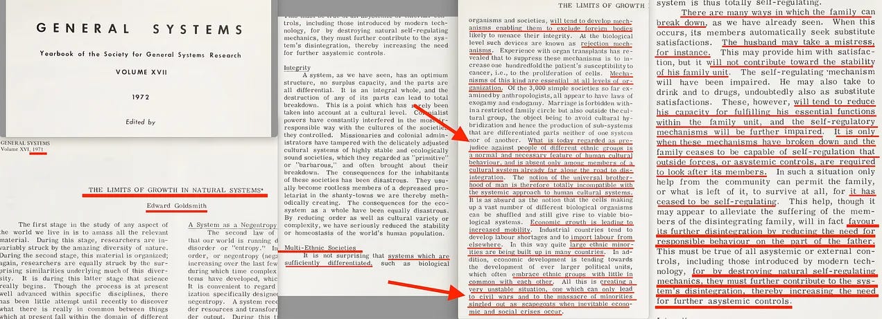 ...και ότι αυτή η ιδεολογία, όπως αποδείχθηκε παραπάνω, έχει ως αποτέλεσμα να εκτοπίζονται οι «αυτόχθονες πληθυσμοί» από τα εδάφη τους για να κάνουν χώρο για την ανεξέλεγκτη εκμετάλλευση των φυσικών πόρων - και το ανησυχητικό είναι ότι δεν φαίνεται να υπάρχει έλλειψη των ελίτ που υποστηρίζουν πρόθυμα αυτή την παράλογη ατζέντα που είναι για τα σκουπίδια… (περισσότερα στο άρθρο για τη Γενική Θεωρία Συστημάτων που συνδέεται παραπάνω)...