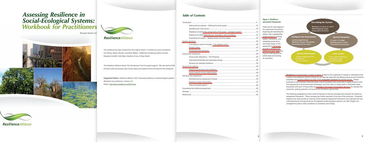 Το 2010, η Συμμαχία για την Ανθεκτικότητα δημοσίευσε το βιβλίο "Αξιολόγηση της Ανθεκτικότητας στα Κοινωνικά-Οικολογικά Συστήματα: για Επαγγελματίες" [1]. Αλλά πριν πάμε εκεί, και γιατί έχει σημασία, ας καθορίσουμε πρώτα τους συγγραφείς. Lance Gunderson, Ann Kinzig, Allyson Quinlan και Brian Walker.