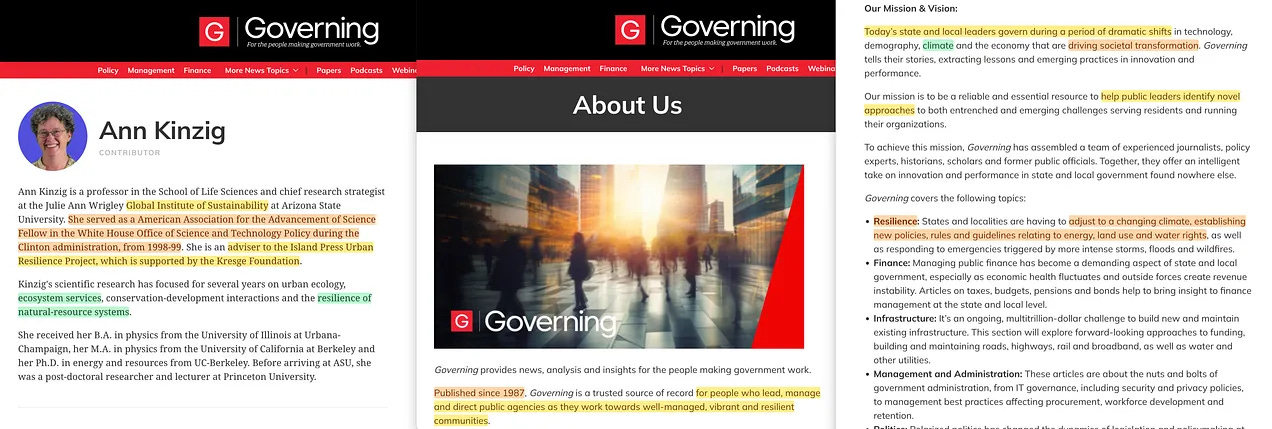 Η μόνη εξαίρεση των τεσσάρων είναι η Ann Kinzig, η οποία τώρα φαίνεται να συνεργάζεται με... περιμένετε, τι; Είναι στο ASU, αλλά και συνεργάτης στο «Governing» [3], το οποίο προφανώς είναι ένα περιοδικό που κυκλοφορεί από το... 1987 [4]. Αλλά το πιο σημαντικό...