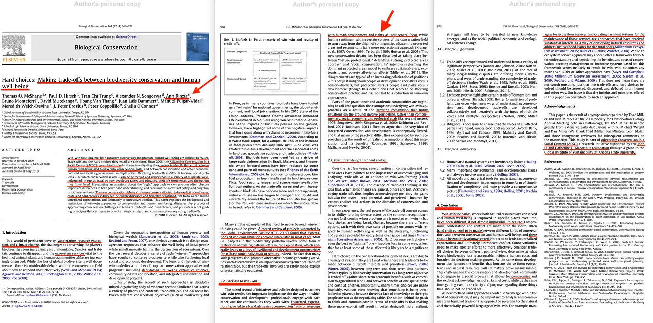 ... και ας ρίξουμε μια γρήγορη ματιά στη συγκεκριμένη εργασία, με τίτλο: «Δύσκολες επιλογές - Κάνοντας συμβιβασμούς μεταξύ της διατήρησης της βιοποικιλότητας και της ανθρώπινης ευημερίας» [6] που φαίνεται να είναι ένα καλό μέρος για να μάθουμε πού είναι πιστή η Ann -
