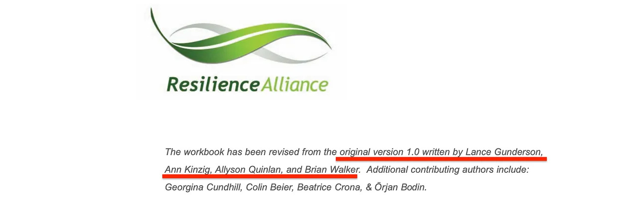 Από αυτούς τους τέσσερις, οι τρεις εξακολουθούν να εργάζονται στη Συμμαχία Ανθεκτικότητας [2] , συμπεριλαμβανομένου του Lance Gunderson. Στην πραγματικότητα, εξετάζοντας τον κατάλογο των μελών τους, υπάρχει αρκετό υλικό εδώ για εβδομάδες σχολιασμού.