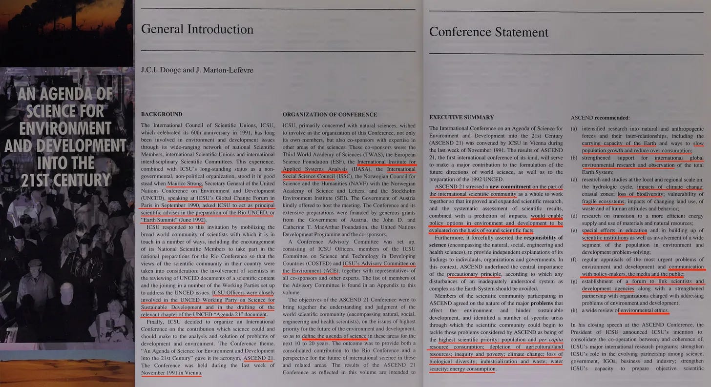 Το 1991, η έκθεση ASCEND 21 [58] εκπονήθηκε από το ICSU και το IIASA κατόπιν αιτήµατος του Maurice Strong - προτείνοντας ένα συστηµικό αναλυτικό πλαίσιο για το σχεδιασµό της βιώσιµης ανάπτυξης. Ευθυγραμμισμένη στενά με την αναδυόμενη αρχιτεκτονική της IPCC, προώθησε την ολοκληρωμένη μοντελοποίηση, το σχεδιασμό σεναρίων και τη διεπιστημονική επιστήμη ως εργαλεία για τη μακροπρόθεσμη παγκόσμια διακυβέρνηση. Έθεσε το βασικό εννοιολογικό υπόβαθρο τόσο για την Ατζέντα 21 όσο και για τον εξελισσόμενο ρόλο της IPCC ως θεσμού καθοδήγησης της πολιτικής, ιδίως όσον αφορά τη στρατηγική μετριασμού και την κατασκευή μελλοντικών σεναρίων.