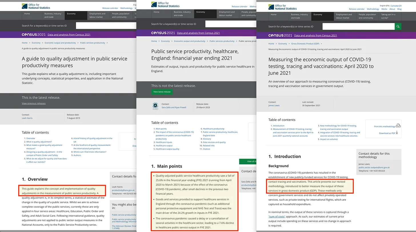 Και η αποκάλυψη ότι αυτό σχετίζεται με αλλαγές στις μετρήσεις της παραγωγής σε - από όλα τα πράγματα - την υγειονομική περίθαλψη και την εκπαίδευση λέει πολλά.