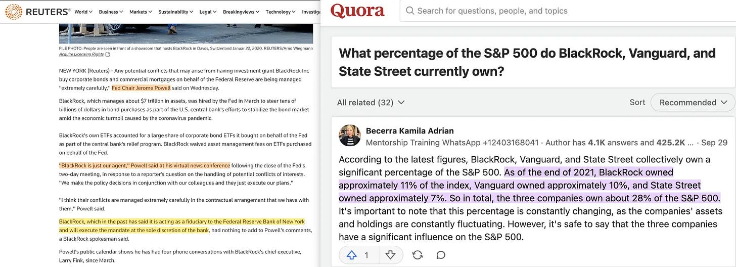 Η σύγχρονη κατάσταση έχει συγκεντρώσει την εξουσία στις μη υπόλογες κεντρικές τράπεζες, οι οποίες πρόσφατα εξασφάλισαν ότι ο Kwarteng και η Liz Truss δεν θα είχαν καμία αστεία ιδέα. Και γιατί; Γιατί κάθε φορά που υπάρχει κρίση, οι πολιτικοί ικετεύουν για περισσότερη Ποσοτική Χαλάρωση - η οποία στη συνέχεια επιτρέπει την αγορά ακόμη περισσότερων περιουσιακών στοιχείων από τα μέτωπα, τους πράκτορες της αυτοκρατορίας των κεντρικών τραπεζών [22]. Αυτό είναι πιο εμφανές στις ΗΠΑ μέσω της Blackrock, της State Street και της Vanguard, οι οποίες αγοράζουν σταδιακά την αμερικανική οικονομία, σιγά-σιγά. Αλλά η ίδια δυναμική λαμβάνει χώρα και στην Ευρώπη - απλώς επιλέγουν διαφορετικές κατηγορίες περιουσιακών στοιχείων... προς το παρόν, τουλάχιστον.