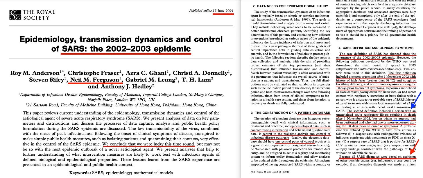 Όσον αφορά το SARS του 2003, αυτό ήταν - σύμφωνα με τον Neil Ferguson [19] - ένα γεγονός χωρίς αυτοψία, διάγνωση αποκλεισμού. Οδήγησε επίσης στη δημιουργία του CDC του Χονγκ Κονγκ και του Ευρωπαϊκού CDC, τα οποία ξεκίνησαν αμέσως πρωτοβουλίες επιτήρησης της δημόσιας υγείας.