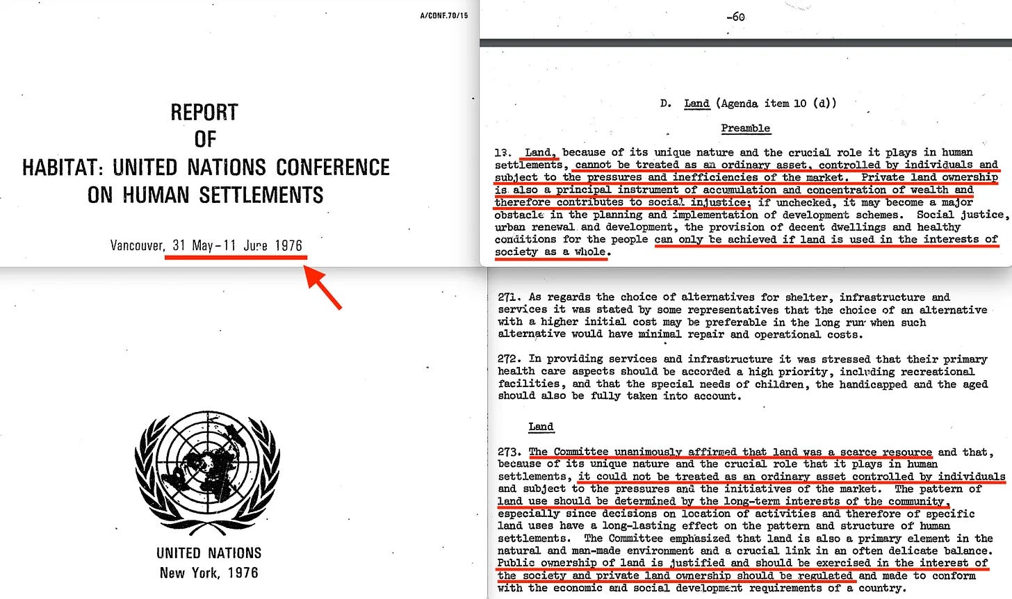 ... μια έκκληση για σχεδιασμό όλων των «ανθρώπινων οικισμών», σε συμφωνία με τις επανειλημμένες εκκλήσεις του παρελθόντος. Φυσικά, αν είστε αγρότης που έχει ένα χωράφι δίπλα σε μια «σχεδιασμένη πόλη», τότε τι; Ω, περιμένετε, τότε θα θεωρηθείτε «ενδιαφερόμενος» και η «συλλογικότητα» θα υπαγορεύει τι θα πρέπει να συμβεί στη γη σας. Όχι, αυτό δεν είναι αστείο.