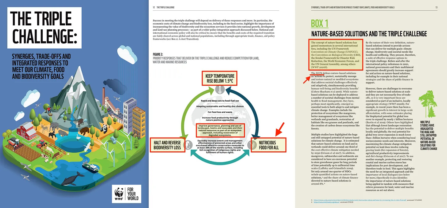 Με την ιδιότητα του ΟΗΕ, το «δικαίωμα» σε οτιδήποτε σημαίνει γενικά κάτι εντελώς διαφορετικό από αυτό που θα περίμενε κανείς- ένα καλό παράδειγμα είναι το «δικαίωμά τους στην τροφή», το οποίο δεν σημαίνει ότι θα σας δώσουν δωρεάν φαγητό [15] , αλλά ότι θα σας επιτρέψουν να ζήσετε σε ένα οικόπεδο γης που ανήκει σε... καλά, σίγουρα όχι σε εσάς. Ο ισχυρισμός «θρεπτικός» μπορεί να γίνει κατανοητός με διάφορους τρόπους [16]- θα μπορούσε να θεωρηθεί ότι σημαίνει «φυτικής προέλευσης» (και δεν έχει σημασία αν αυτό είναι σωστό ή όχι), ή θα μπορούσε να γίνει κατανοητός ως «σε περιβάλλον με χαμηλότερη ατμοσφαιρική συγκέντρωση διοξειδίου του άνθρακα». Σε γενικές γραμμές, ωστόσο, επικεντρώνεται στην εφαρμογή ενός συνδυασμού των αρχών που καθορίζονται από την UNFCCC (εκπομπές) και την CBD (διαχείριση της γης), γεγονός που συνδέεται περαιτέρω με την αναφορά των «ανθρώπινων οικοτόπων», η οποία σύμφωνα με τη διάσκεψη του ΟΗΕ του 1976 σημαίνει... τον κεντρικό σχεδιασμό της γης [17]. Και τέλος, οι ψευδείς ισχυρισμοί σχετικά με την «οικονομικά προσιτή ενέργεια» είναι φυσικά αποκλειστικά θέμα ορισμού... που δυστυχώς πρέπει να οριστεί από την IUCN, ή από μια ΜΚΟ που είναι εγγεγραμμένη στο ECOSOC με Γενικό Συμβουλευτικό Καθεστώς.