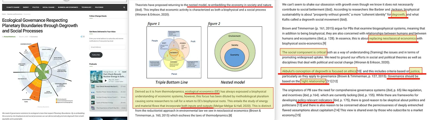 «Η νεοκλασική οικονομία έχει αποδειχθεί ανίκανη να σεβαστεί τις PB. Για να λειτουργήσουμε εντός των PBs χρειαζόμαστε μια οικολογική οικονομία, που σημαίνει ότι η αποανάπτυξη πρέπει να κλιμακωθεί...»