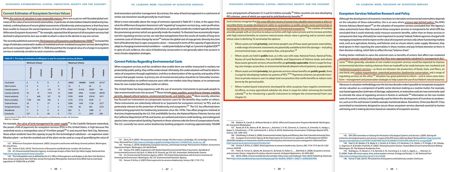... ναι, αυτή η έκθεση περιγράφει τη στρατηγική για τη νομισματοποίηση των «οικοσυστημικών υπηρεσιών», οι οποίες μέσω μιας εταιρείας συμμετοχών θα εισαχθούν στο χρηματιστήριο στη συνέχεια, προκαλώντας πολύ υψηλότερες τιμές στο σούπερ μάρκετ.