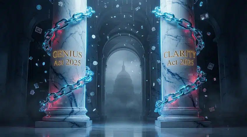 Η υποδομή έχει ήδη δημιουργηθεί, κωδικοποιημένη στο νόμο. Τον Ιούλιο του 2025, ο νόμος GENIUS Act (Guiding and Establishing National Innovation for U.S. Stablecoins) θέσπισε ένα ομοσπονδιακό καθεστώς για τα stablecoins (σταθερά νομίσματα πληρωμών), επιβάλλοντας 100% αποθεματικά σε μετρητά ή βραχυπρόθεσμα κρατικά ομόλογα, πλήρη συμμόρφωση KYC/AML, δημόσιες γνωστοποιήσεις και τραπεζική αδειοδότηση για τους εκδότες. Εξουσιοδοτεί τα ασφαλισμένα ιδρύματα να φυλάσσουν και να μετατρέπουν σε ψηφιακά κουπόνια καταθέσεις και μέσα χρηματαγοράς -ενώ ο συμπληρωματικός νόμος CLARITY Act (Digital Asset Market Clarity Act) οριοθετεί τους κατάλληλους εκδότες, επιβάλλει την υποστήριξη 1:1 με ελέγχους και απαλλάσσει τα συμβατά stablecoins από τους κανόνες περί κινητών αξιών.
