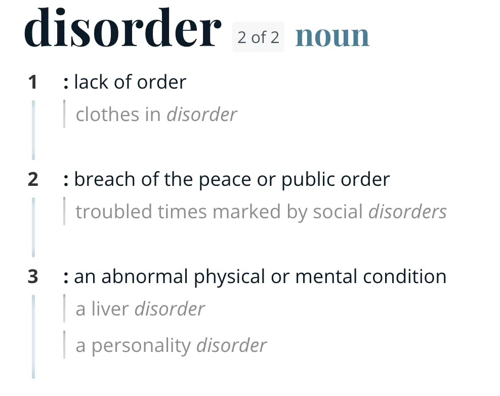 Το διαδικτυακό λεξικό Merriam-Webster ορίζει τη λέξη «διαταραχή» με 3 τρόπους