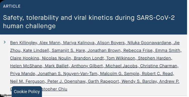 Αφού απέκτησαν το GMP goop και το επιβεβαίωσαν με αλληλούχιση, οι ερευνητές το ένεσαν ενδορρινικά σε υγιείς εθελοντές. Την τελευταία φορά που έλεγξα, οι άνθρωποι που λέγονταν ότι «μολύνθηκαν» με «SARS-COV-2» φυσικά δεν έλαβαν ενδορρινική ένεση και στη συνέχεια τους ζητήθηκε να φορούν κλιπ μύτης για 20 λεπτά σε οποιοδήποτε σημείο κατά τη διάρκεια της «μόλυνσης» τους.