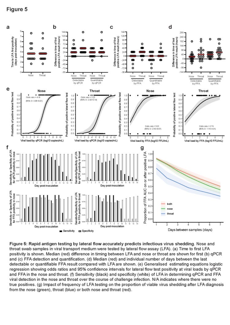 Ωστόσο, από ~4 ημέρες μετά τον εμβολιασμό, η LFA έδειξε υψηλή ευαισθησία ως υποκατάστατο της qPCR ή της FFA-θετικότητας