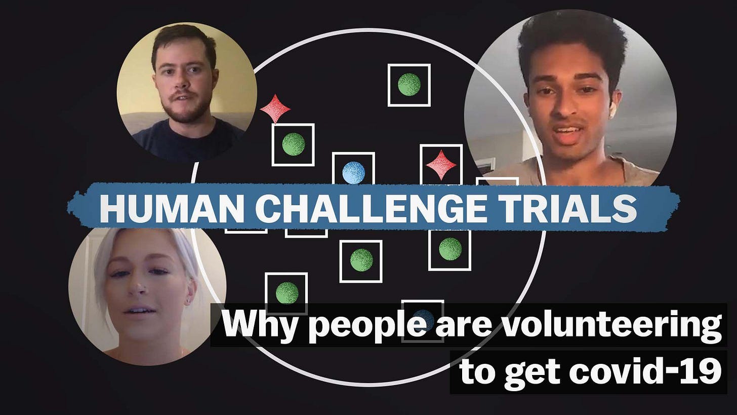 Τα μοναδικά πλεονεκτήματα της ανθρώπινης πρόκλησης «SARS-CoV-2» είναι η ικανότητά της να τυποποιεί το «ιϊκό» εμβόλιο, τις συνθήκες μελέτης και τον ακριβή χρόνο έκθεσης, ελέγχοντας έτσι τους παράγοντες που αναπόφευκτα συγχέουν τις μελέτες φυσικής μόλυνσης