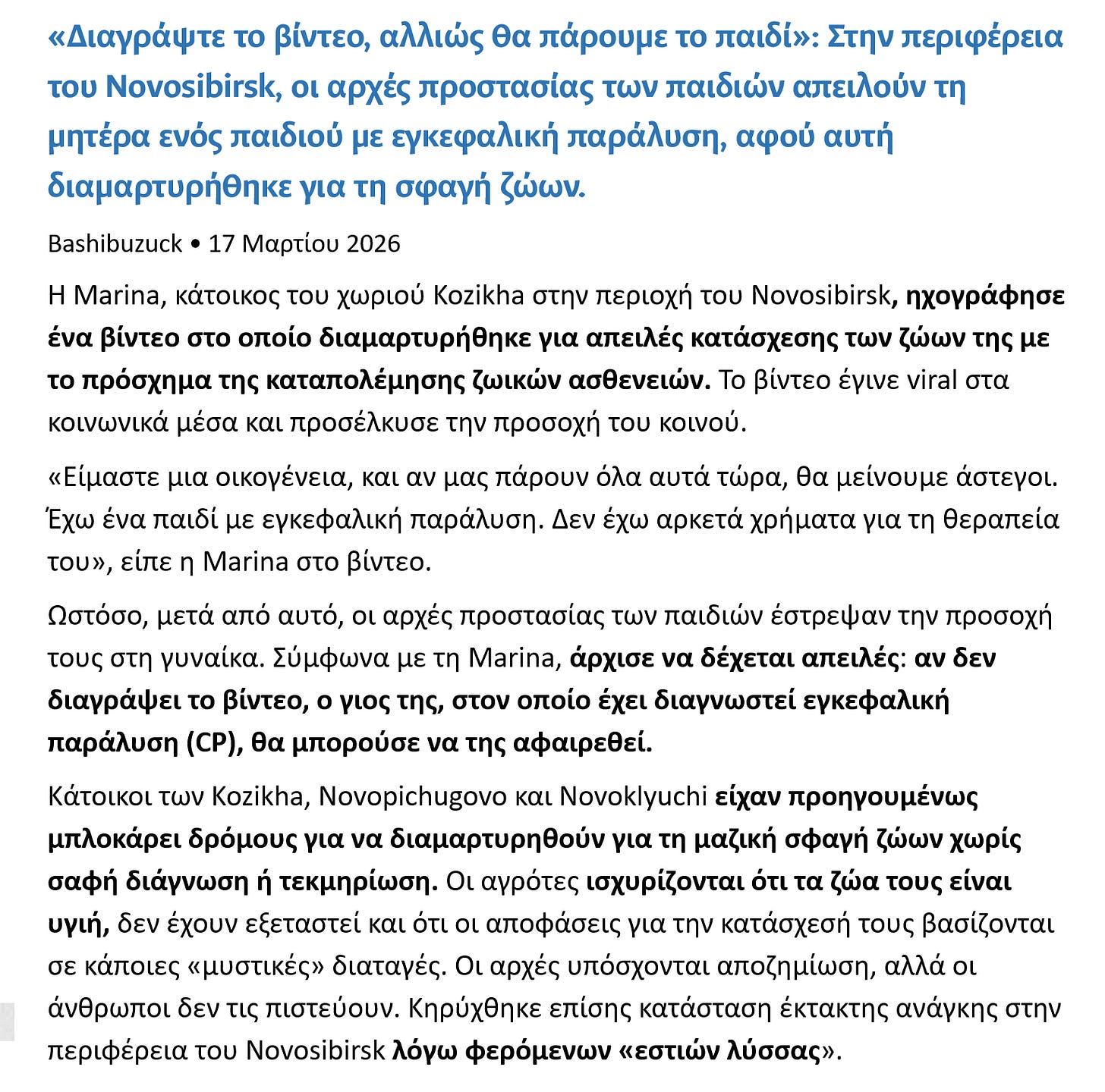 Εκτός από την περιοχή του Novosibirsk, γενοκτονία ζώων έχει διαπραχθεί επίσης στις περιοχές Altai και Transbaikal, στη Buryatia και στη Δημοκρατία του Altai. […]