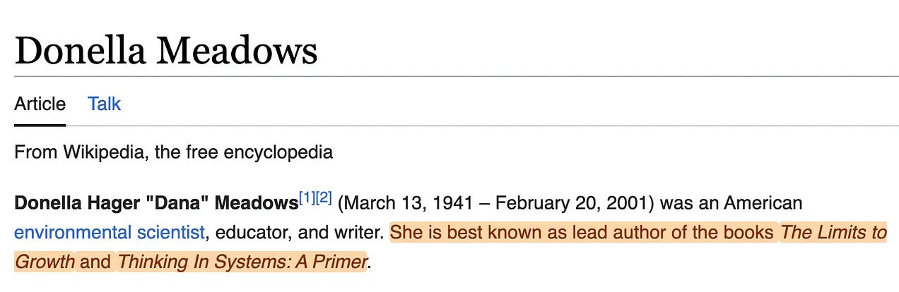 Η Donella συνεχίζει, περιγράφοντας πώς ο Jay Forrester, όταν ρωτήθηκε από τον Club of Rome για το πώς να λυθούν τα προβλήματα της φτώχειας, της καταστροφής του περιβάλλοντος, της εξάντλησης των πόρων και ούτω καθεξής, έδωσε μια μοναδική, αλλά απλή απάντηση: Ανάπτυξη.