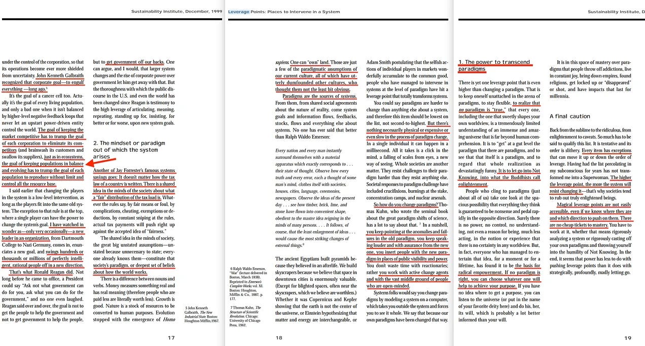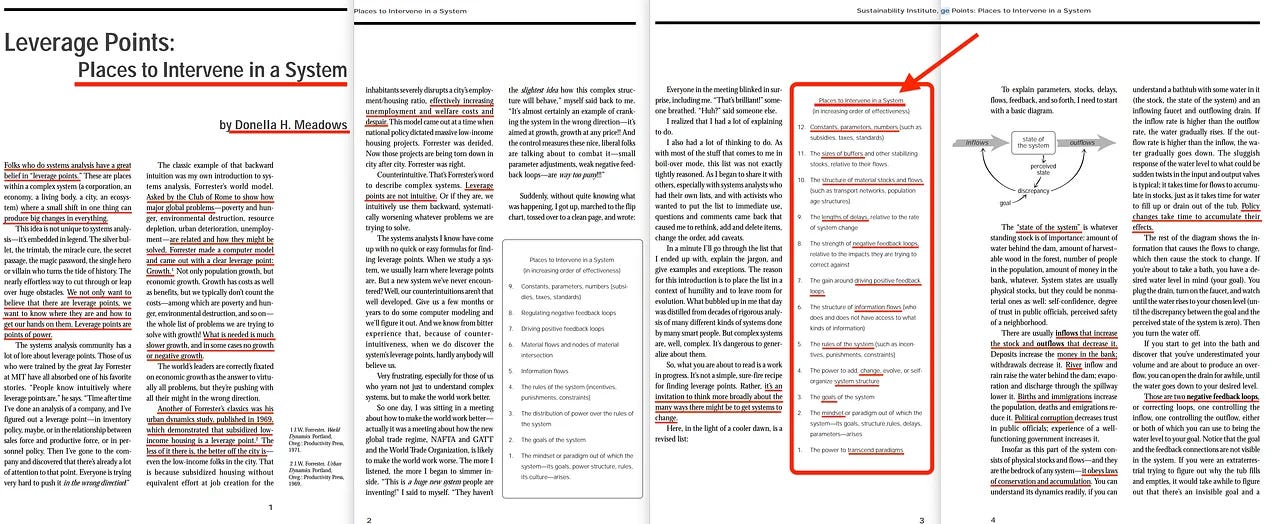 Και εκεί συναντάμε ένα έργο της Donella Meadows: «Σημεία μόχλευσης - Σημεία παρέμβασης σε ένα σύστημα» [1].