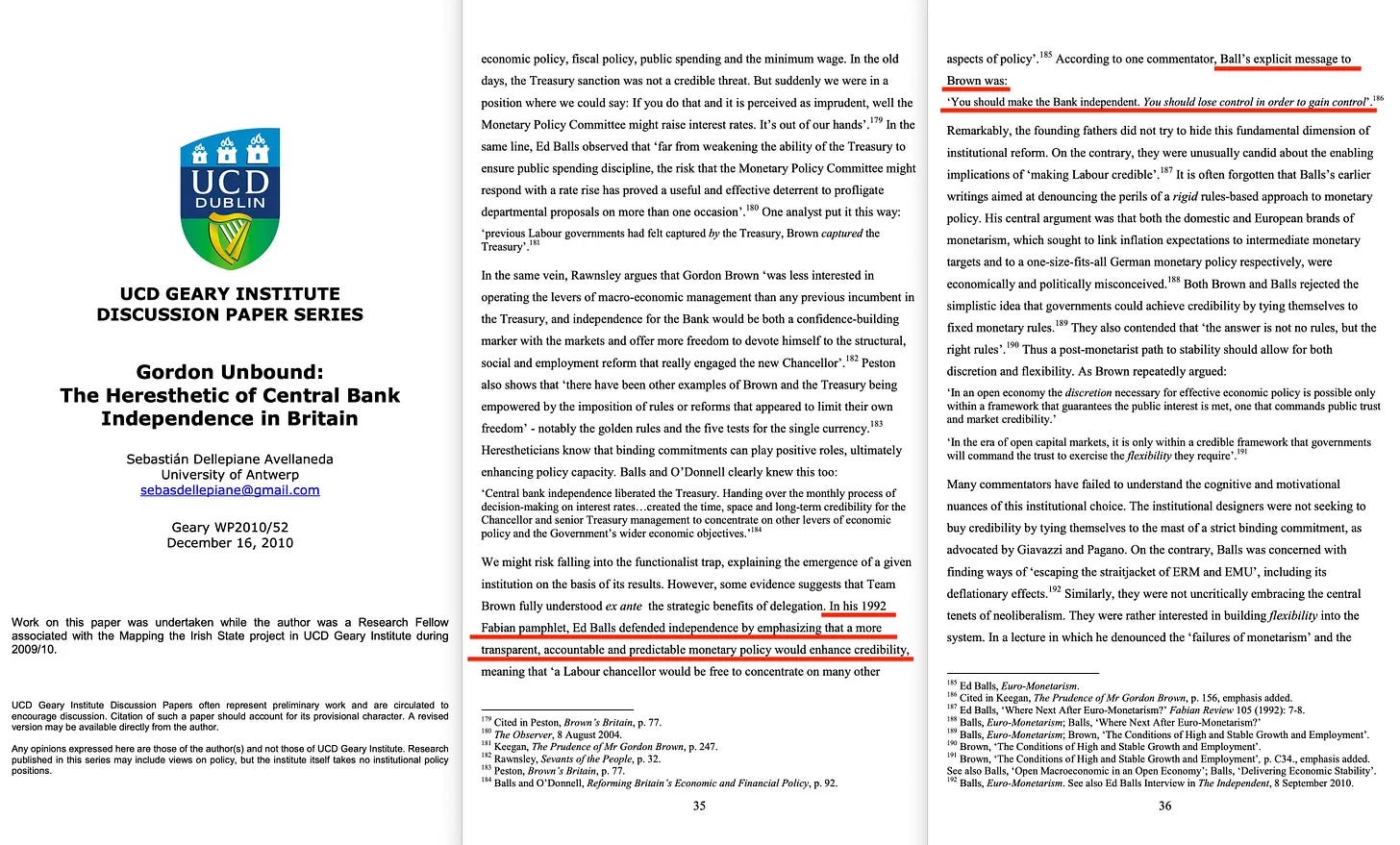 Και ήταν μια ριζική μεταρρύθμιση, η οποία ξεκίνησε με την ανεξαρτησία της Τράπεζας της Αγγλίας. Αυτό, παρεμπιπτόντως, ξεκίνησε με ένα φυλλάδιο της Fabian του 1992 που συνέταξε ο Edward Balls με τίτλο «Ευρω-Μονεταρισμός» [13] , το οποίο έκτοτε έχει σχεδόν εξαφανιστεί. Γνωρίζουμε ωστόσο [14] ότι το σκεπτικό... διαφάνεια, λογοδοσία... φαίνεται να ευθυγραμμίζεται αρκετά έντονα με τις θεμελιώδεις αρχές της «Χρηστής Διακυβέρνησης».