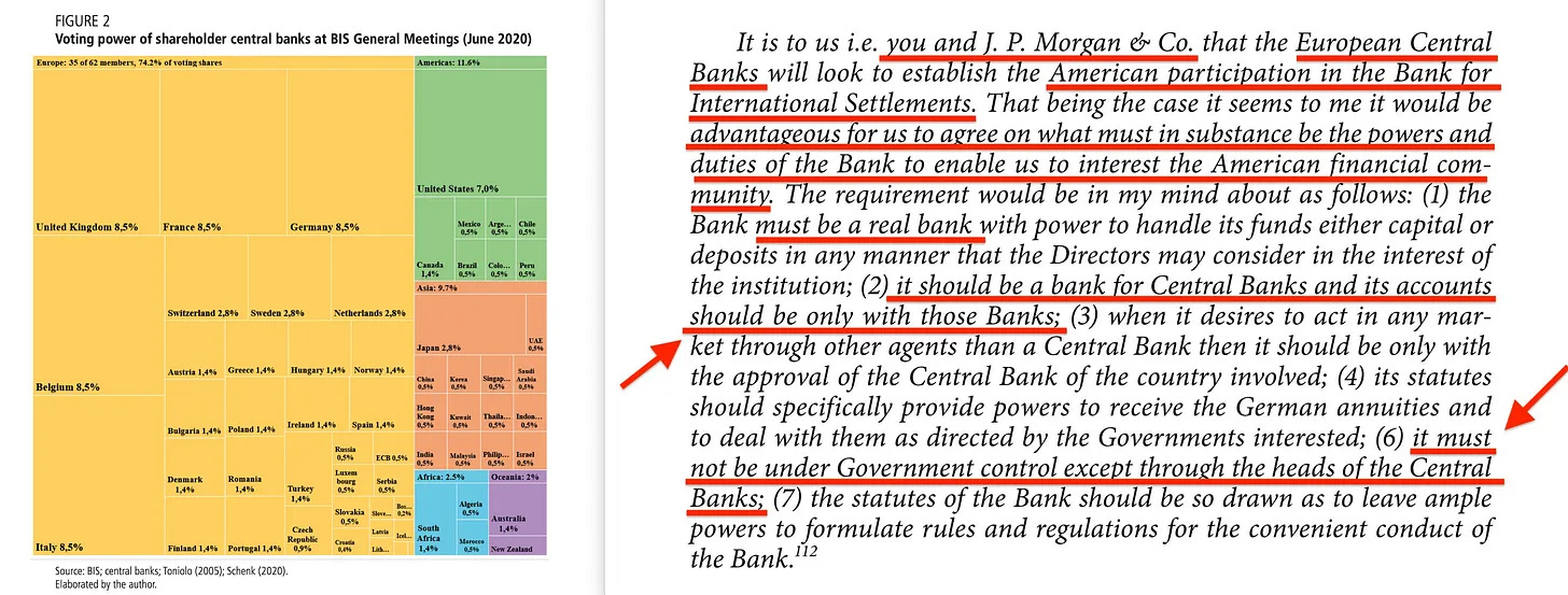 Η ίδια η Τράπεζα Διεθνών Διακανονισμών έχει μια αξιοσημείωτη ιστορία [69]. Αλλά αυτό που σχεδόν κανείς δεν γνωρίζει είναι όχι μόνο ότι οι διαπραγματεύσεις έλαβαν χώρα καθώς οι αγορές κατέρρεαν τον Οκτώβριο του 1929, αλλά και ότι ο πράκτορας της JP Morgan απαίτησε -