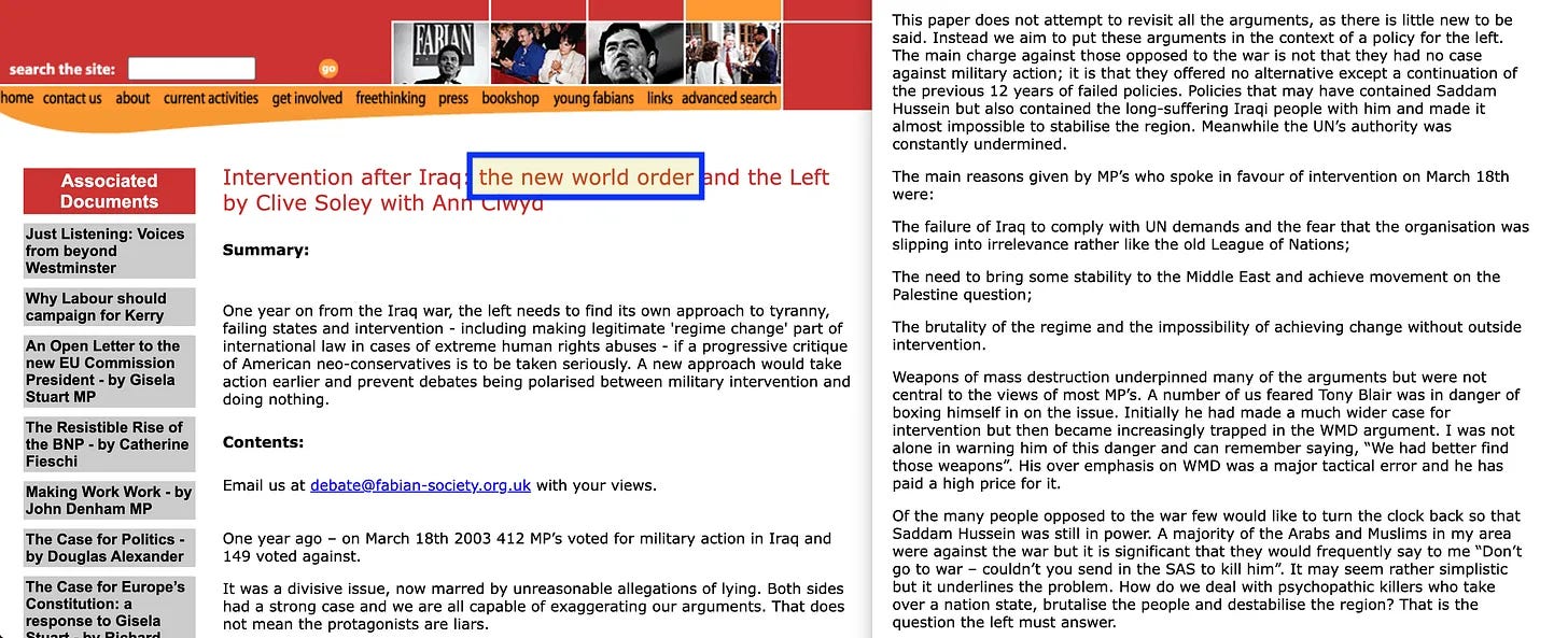 Πιστή στη φόρμα της, η Fabian Society δεν έκανε καμία αναφορά σε αυτόν τον υποκείμενο στόχο και αντ’ αυτού διαμόρφωσε το ζήτημα παραπλανητικά γύρω από μια υποτιθέμενη «έλλειψη νομιμότητας».
