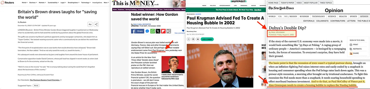 Ο σπόρος αυτής της ιδέας φυτεύτηκε από τους Lawrence Summers και Alan Greenspan [15]. Αυτό έχει ιδιαίτερο ενδιαφέρον, διότι αυτοί, μαζί με τους Paul Krugman, Jeffrey Sachs, Joseph Stiglitz, Frederick Mishkin και Robert Rubin, αντιπροσώπευαν την αφρόκρεμα της νεοφιλελεύθερης σκέψης της δεκαετίας του 1990, μοιραζόμενοι όλοι ένα πάθος για τις συμφωνίες ελεύθερου εμπορίου, την απορρύθμιση και τις νεοφιλελεύθερες οικονομικές πολιτικές - αν και ο Krugman και ο Joseph Stiglitz [16] του Collegium International αργότερα άλλαξαν πορεία - .αν και μόνο αφού είχαν περάσει το σημείο χωρίς επιστροφή.. Όσον αφορά τη νομισματική πολιτική, αυτή επηρεάστηκε σε μεγάλο βαθμό από τον Keynes και τον Friedman, εξασφαλίζοντας μια συνεχή επέκταση της νομισματικής βάσης - ένα μοτίβο που σίγουρα συνεχίστηκε υπό τον Ben Bernanke. Τα πακέτα διάσωσης του 2008 σηματοδότησαν τη μεγαλύτερη καταγεγραμμένη αύξηση της νομισματικής βάσης στην αμερικανική ιστορία. Και αυτό το μοτίβο παρατηρήθηκε και στο Ηνωμένο Βασίλειο, όπου η παρέμβαση της νομισματικής πολιτικής ύψους 200 δισ. λιρών ήταν 10 φορές μεγαλύτερη από την αντίστοιχη παρέμβαση της δημοσιονομικής πολιτικής, για την οποία ο Gordon Brown ισχυρίστηκε ως γνωστόν ότι «έσωσε τον κόσμο» [17]. Παρεμπιπτόντως, ένα άτομο που δεν γέλασε με τον ισχυρισμό του Brown ήταν ο γνωστός νεοφιλελεύθερος Paul Krugman [18]. Ο ίδιος που το 2002 υποστήριξε μια στεγαστική φούσκα19 ως λύση μετά το κραχ της dot-com [20].
