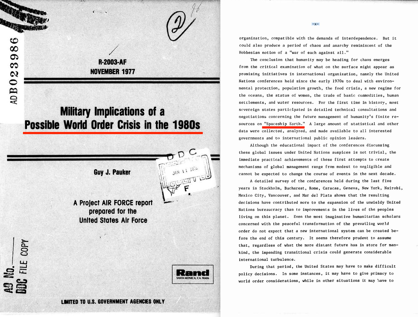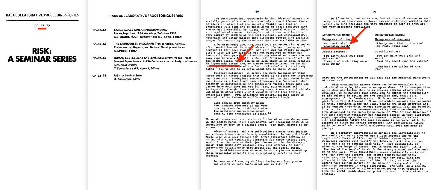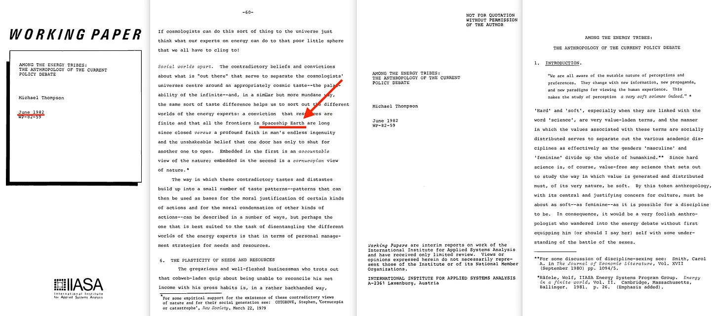 Παρεμπιπτόντως, την ίδια εποχή ξεκίνησε και το IIASA [31] . Πιστεύουν και αυτοί ότι το σύμπαν είναι βασικά ένα μοντέλο προγραμματισμού, και αφού δημοσίευσαν την πρώτη εργασία για τη νομισματοποίηση του διοξειδίου του άνθρακα το 1975 [32], θα συνέχιζαν να δημοσιεύουν πολλές [33] εργασίες [34,35] που θα έσερναν εξίσου καλά την ιστορία του «Διαστημόπλοιου Γη».