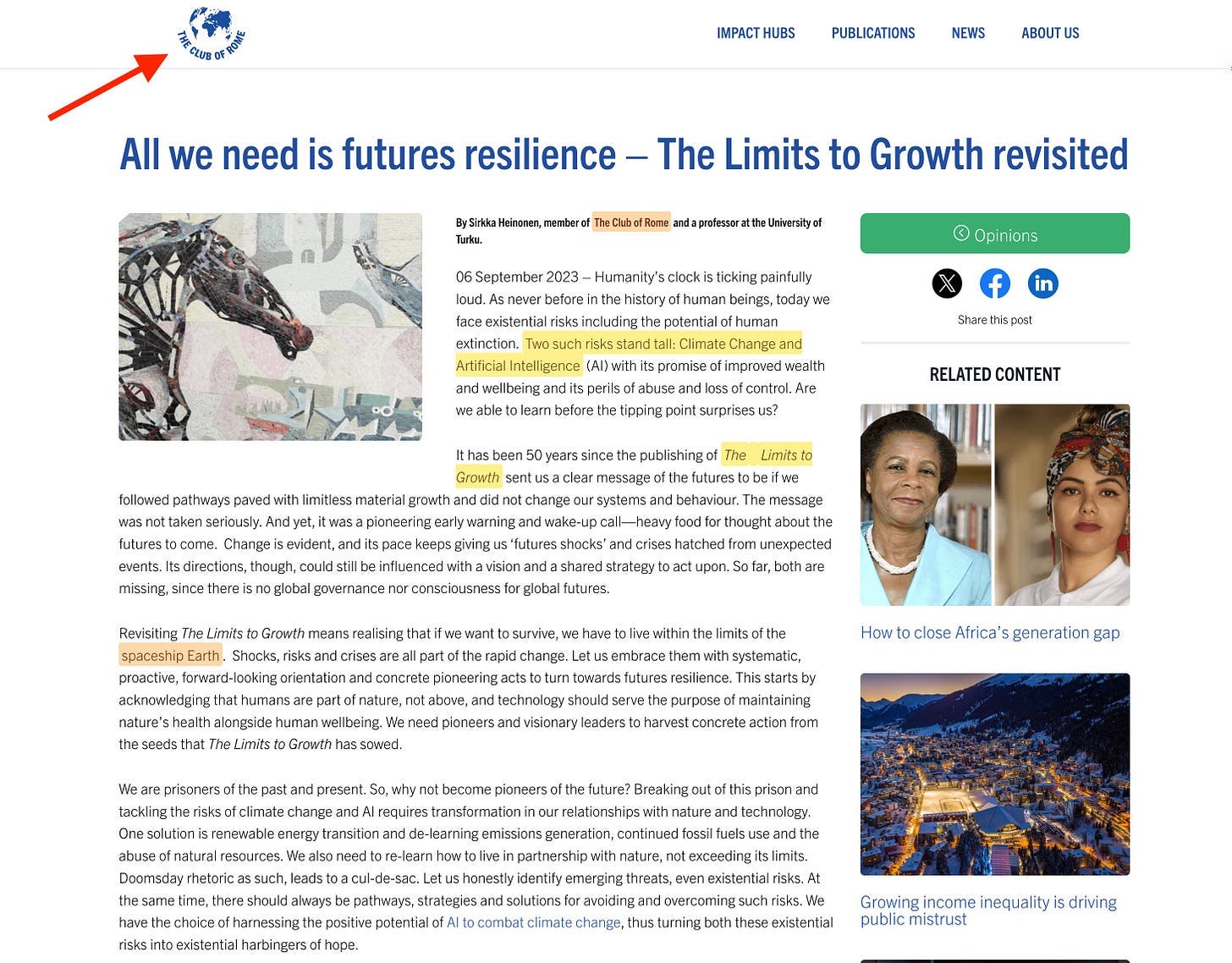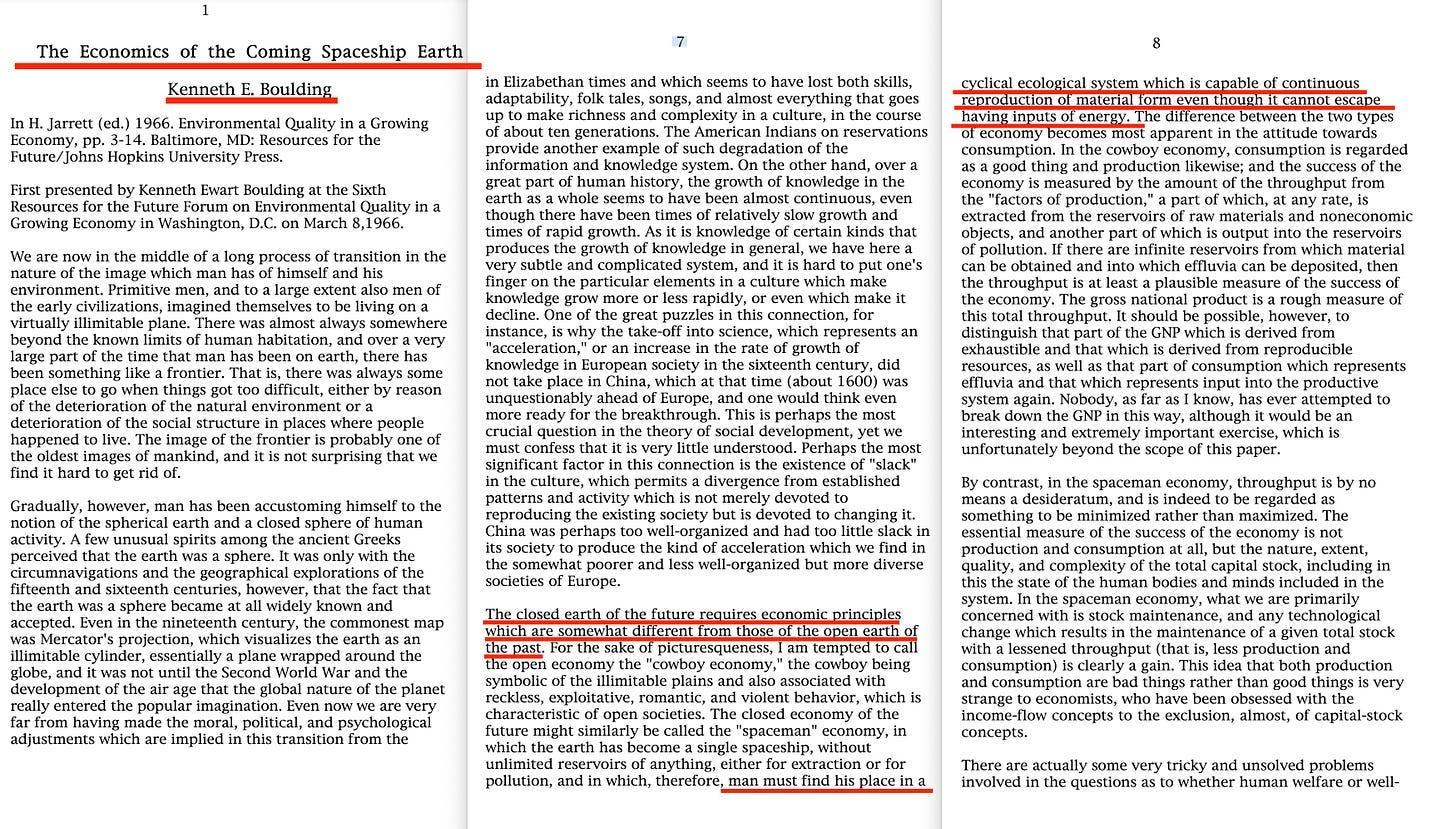 Από εκεί και πέρα, οι θεωρίες του Διαστημόπλοιου Γη και της Κυκλικής Οικονομίας, οι οποίες δηλώνουν ότι όλοι μας είμαστε στην πραγματικότητα απλώς μέρος ενός «μεγαλύτερου συστήματος», μοιραζόμενοι έτσι την κοσμοθεωρία πολλών ψυχοπαθών μαρξιστών ελεγκτών, θα συγκεντρώσουν στη συνέχεια περαιτέρω υποστήριξη [40] από τους [41] Rockefeller [42], Rothschild [43], την Ευρωπαϊκή Ένωση [44], το Παγκόσμιο Οικονομικό Φόρουμ [45], το Παγκόσμιο Ταμείο Περιβάλλοντος [46] και [47] πολλούς [48], πολλούς [49] άλλους [50] φωστήρες [51].