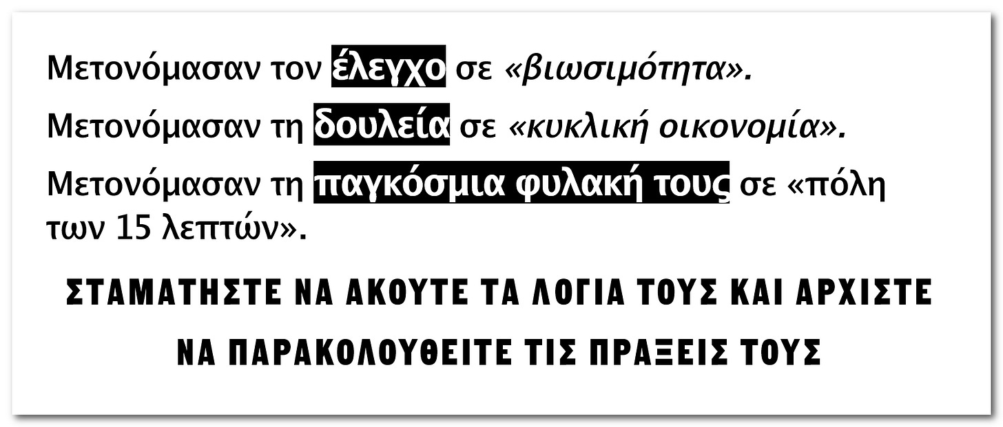 Και όλοι τους οδηγούν σε στρατόπεδα συγκέντρωσης φυλακισμένων διάρκειας 15 λεπτών, παγκόσμια επιτήρηση, εμβόλια και ίσα δικαιώματα εκπομπών διοξειδίου του άνθρακα για όλους μας. Εκτός κι αν είστε δισεκατομμυριούχος που κατέχει δάση, φυσικά, και μπορείτε να αντισταθμίσετε τα ιδιωτικά σας lear jets.
