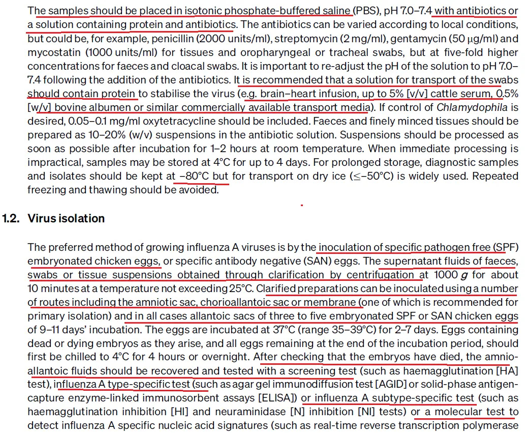 Αντίθετα, με απλά λόγια, αυτό το πρωτόκολλο απαιτεί την έγχυση μη καθαρισμένου, μη ταυτοποιημένου υλικού από σωματικά υγρά ή ιστούς κοτόπουλων, μαζί με αντιβιοτικά, μέσω των κελυφών των αυγών στα έμβρυα και τη σφράγιση των αυγών με τσιμέντο ή γρήγορης ξήρανσης κόλλα, στη συνέχεια την παρακολούθηση των εμβρύων για θάνατο και τέλος την αφαίρεση του αμνιακού-αλλαντοϊκού υγρού και τη δοκιμή για έναν ιό που δεν έχει αποδειχθεί ποτέ ότι υπάρχει, χρησιμοποιώντας μια δοκιμή που δεν ελέγχει για ιούς. Επειδή «επιστήμη».