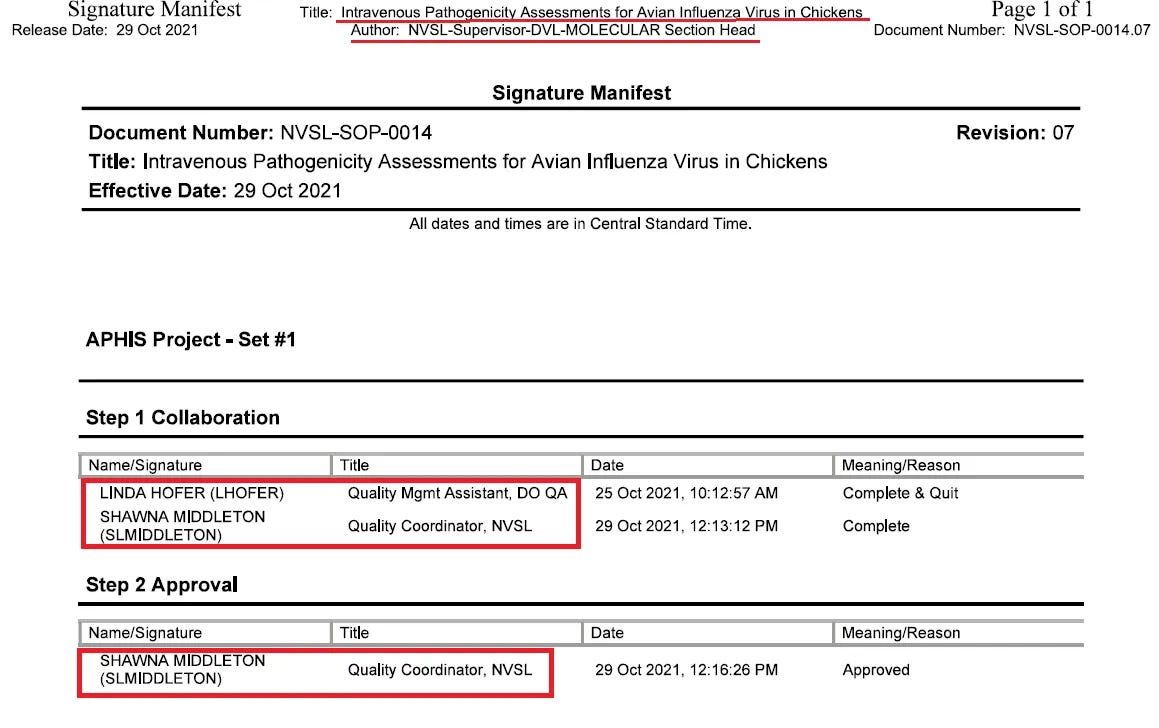 Το δεύτερο έγγραφο (σελ. 33 - 44) που παρέχεται από την Tonya G. Woods, η οποία ενεργεί ως διευθύντρια, έχει τίτλο «Ενδοφλέβιες αξιολογήσεις παθογένειας για τον ιό της γρίπης των πτηνών σε κοτόπουλα».